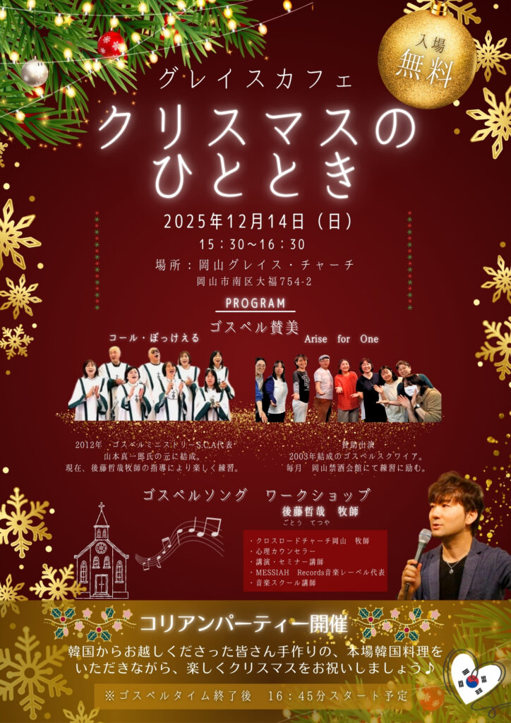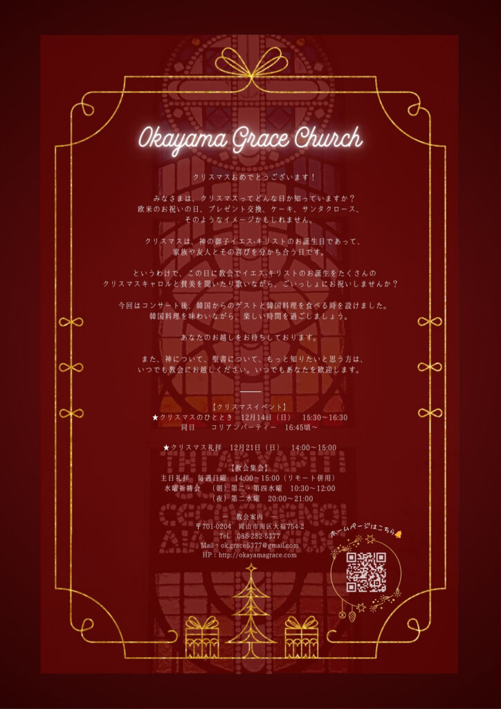 クリスマス礼拝・ゴスペル・コリアンパーティーのお知らせ